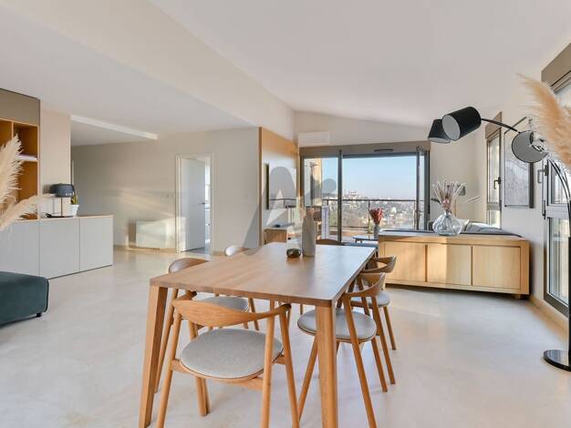 Dans une copropriété de standing de 2018, sécurisée. Au dernier étage, "maison sur le toit" de 178m2, très beaux volumes intérieurs et extérieurs. Deux grandes et agréables terrasses, l'une faisant l...