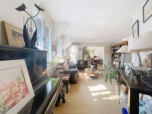 MEUDON - BELLEVUE Situé au dernier étage d'une petite copropriété, ce duplex en très bon état de 75 m² Carrez (91 m² au sol) offre une vue dégagée sur la Tour Eiffel ainsi qu'une luminosité naturelle...