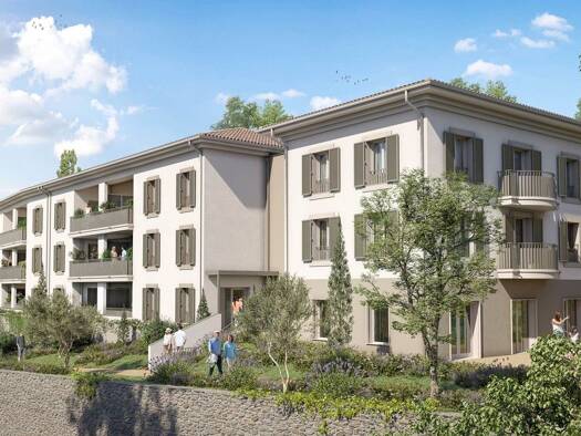Vue sur les collines Ancrée à deux pas de la place du village, la résidence Les Balcons de Saint-Alban tire son nom de ses espaces privatifs et baignés de soleil, véritables prolongements de chaque l...
