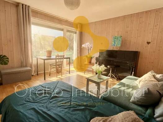 Stationnement en sous-sol + cave INCLUSIdéalement situé dans un quartier calme et sécurisé, grand appartement T2 de 47 m² habitable :* Pièce de vie de 25 m² / Cuisine ouverte. * Très lumineux, et exp...