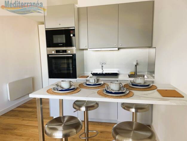 A deux pas de la plage et des commerces, au premier étage d'une résidence sécurisée avec ascenseur, découvrez cet appartement rénové avec goût. Un appartement climatisé de type 2 pièces comprenant un...