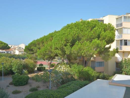 PORT CAMARGUE - Dans une résidence avec piscine privative et parc arboré face au port de plaisance, appartement type T2 en rez-de-chaussée comprenant une entrée, une cuisine ouverte équipée, une pièc...