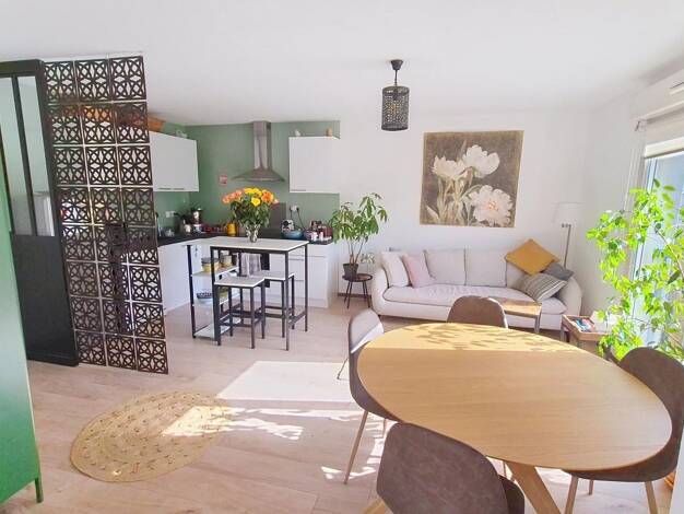 Proche 3 maisons centre ville, agréable F3 en 1er étage dans résidence de 2000 de 6 logements, offrant cuisine ouverte sur salon séjour avec petite terrasse plein ouest, 1 chambre, SDB et WC séparé. ...