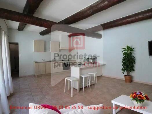 Cœur du village de BARBENTANE, joli petit T3 avec pierres apparentes. Une grande chambre, un bureau, cuisine ouverte entièrement aménagée et équipée sur salon. Climatisation réversible.Vendu avec loc...