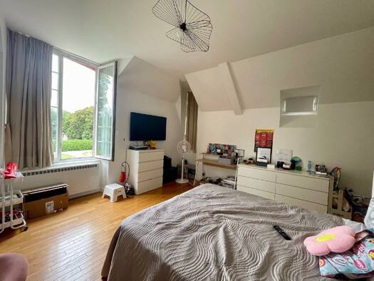 DUPLEX F5 Beau duplex de 118 m² situé dans un Ancien château du 13 ème siecle à 2 min de Milly, en parfait état avec de belles prestations, lumineux et belles hauteurs sous plafond comprenant : Grand...