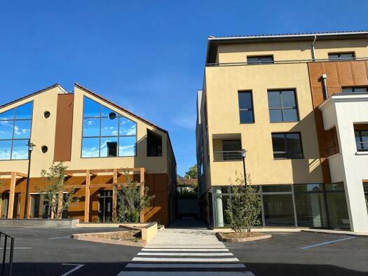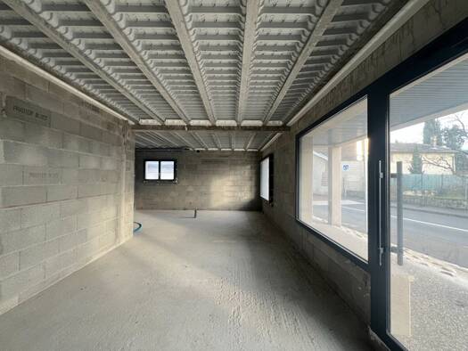 Au centre bourg de Pusignan, Locaux commerciaux neufs à louer livrés brut de béton, fluides en attente et vitrines à poser Reste 1 lot sur les 9 du programme Toute activité possible sauf restauration...