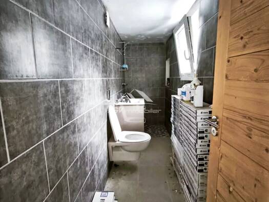 Sur 4 niveaux + grenier (env. 400m²) - toiture neuve (plaques fibro) possibilité de 8 logements dont 6 en location immédiate actuellement 375 euros/mois 4 appartements T 3 de 45 m² et 2 appartements ...