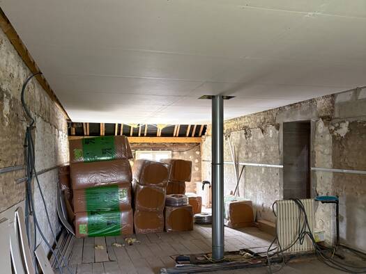 Maison habitable sur 70m2 comprenant entrée, cuisine/salon, sdb, toilette et une chambre au rez de chausée et à restaurer entièrement pour l'étage. Chaufage au bois, tubage neuf refait en 2022, avec ...