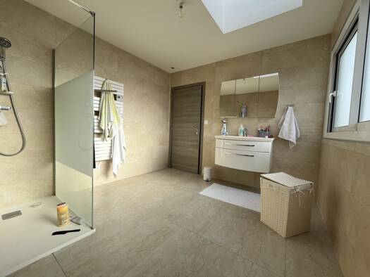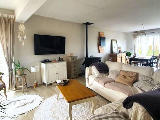 Une maison comprenant une superficie habitable de 156m² avec un vaste hall d'entrée et dégagement avec placards, cuisine équipée neuve, un grand séjour salon, 3 chambres, salle de bain avec WC et un ...
