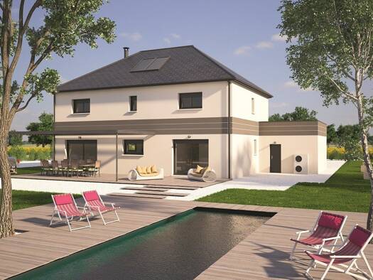 La région a certaines particularités en termes de construction et d'architecture. Les dispositions d'urbanisme imposent des matériaux, coloris d'enduit et de tuiles, nous avons donc conçu ce modèle p...