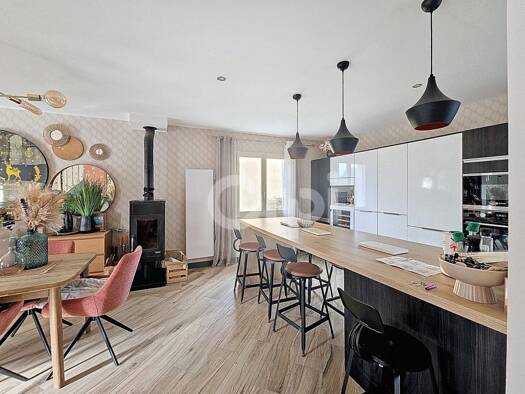 Nouveauté ORPI !! Plouzané : Grande Maison non mitoyenne sur sous sol complet Elle se compose : d'un sas d'entrée donnant accès à une grande pièce de vie avec poêle à granules, une cuisine aménagée/é...