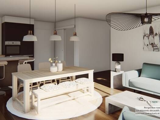 Investissement locatif sous bail commercial meublé. Appartement 3 pièces en duplex composé d'une entrée, séjour cuisine avec terrasse, une chambre, salle de bains, à l'étage une chambre, mezzanine, p...