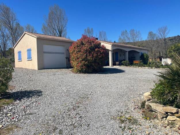 À vendre, à 10 minutes de Ruoms, située dans un secteur calme et tranquille, découvrez cette maison élevée d'un niveau. Le rez-de-chaussée comprend un garage, deux chambres, un cellier ainsi qu'une s...