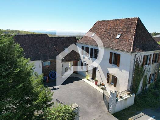 Construite en 2016 et nichée au cœur de la campagne sur un vaste terrain de 9 985 m² avec vue sur les Pyrénées, cette charmante demeure propose un accès via un porche couvert de 31 m², idéal pour gar...