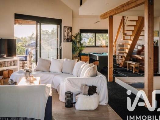 iad France - Christophe Agnolutto vous propose: Dans un joli village au porte des Landes, proche de l' autoroute et à 30 mn de Pau, venez découvrir cette magnifique villa d' architecte avec ossature ...