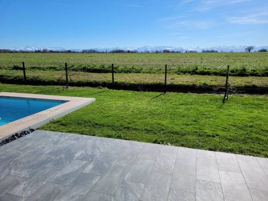 SAUVAGNON. Jolie maison familiale récente (2019), offrant une vue panoramique sur la chaîne des Pyrénées de Bigorre à Anie, avec piscine et jardin paysager. D'une surface de totale de 116,48 m², sur ...