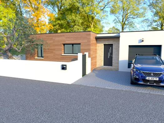 Sur ce terrain, nous vous proposons cette maison neuve : la Blainium, une maison résolument moderne et très singulière. La Blainium, une maison de plain-pied contemporaine, propose une façade très st...