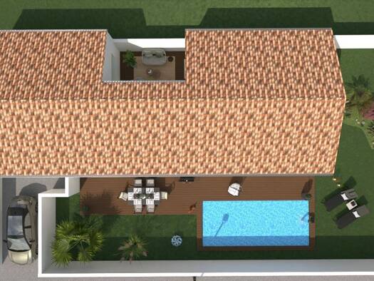 Sur ce terrain, nous vous proposons cette maison neuve : l'INNOVA, une maison contemporaine absolument unique. Avec une surface de 130 m², cette demeure de plain-pied a tout de la maison d'architecte...
