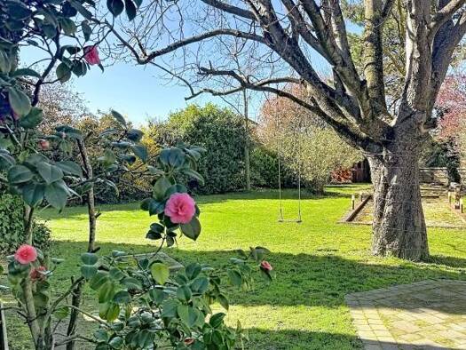 Au rez-de-chaussée, présence d'un garage ainsi que d'un vaste espace correspondant à une ancienne écurie, offrant un fort potentiel d'aménagement. Un grand balcon dessert le premier niveau composé d'...