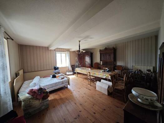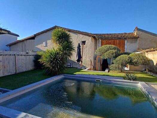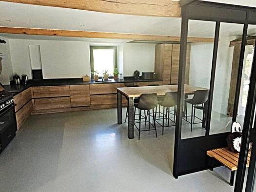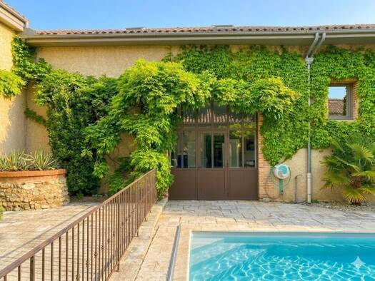 Très belle ferme en pisé entièrement rénovée avec goût et respect de l'ancien de 260 m² habitables + un grand garage carrelé et automatisé de 44 m² avec un wc, une cave de 23 m², un atelier de 30 m² ...