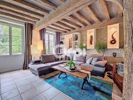 Splendide domaine au sein d'un ancien corps de ferme rénové – 340 m² habitables sur 1390 m² de terrain Vidéo de présentation et Visite virtuelle disponibles sur demande ! Découvrez ce magnifique ense...