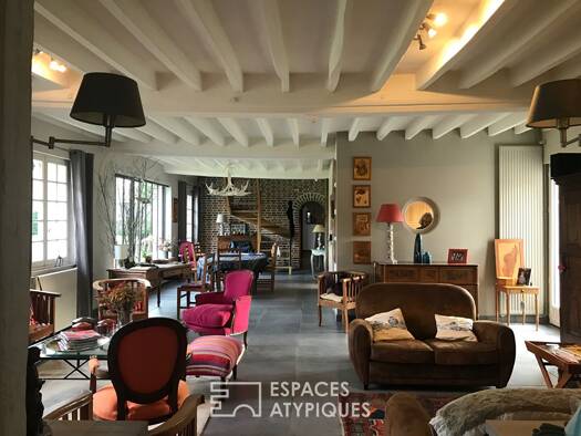 Au coeur de la Sologne, cette maison de village à la façade de briques ocre rouge affirme dès le premier regard une identité forte et profondément ancrée dans son territoire. Derrière ses murs se dév...
