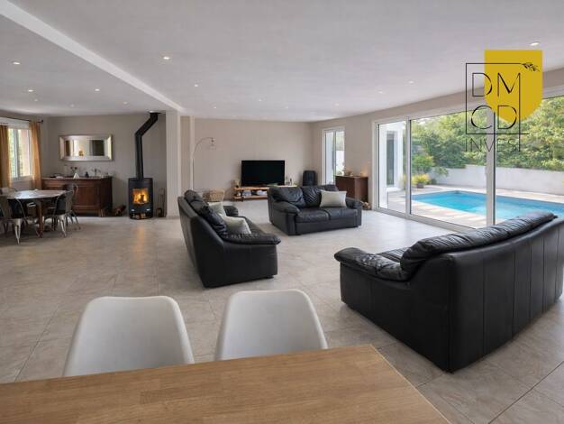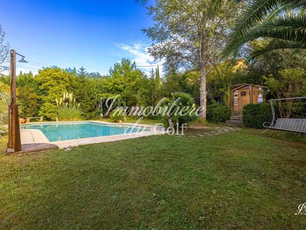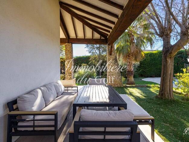 L'Immobilière du Golf vous présente : LA SERENITY, une élégante villa T5 de 215m², édifiée sur un superbe terrain arboré de 1 780 m², dans un cadre verdoyant et intimiste. Idéalement située, cette pr...
