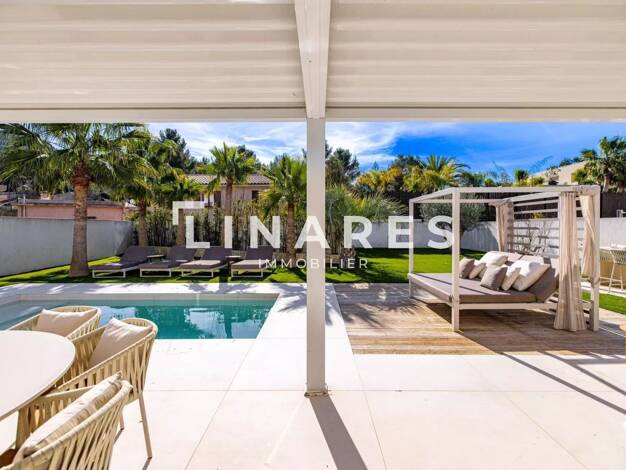 Llinares Immobilier vous propose : PROVENÇALE CHIC, une charmante maison de 120m², entièrement rénovée avec goût et avec des matériaux de grande qualité. Dès l'entrée, les volumes généreux et la lumi...