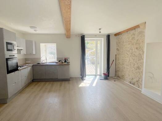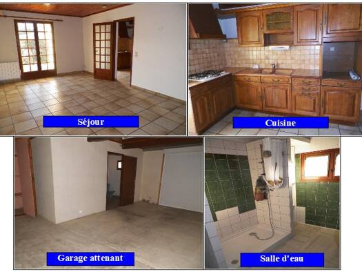 Maison de 90 m² avec garage attenant de 20m² .Elle se compose d'une pièce de vie avec cuisine, un séjour, une chambre et un bureau ainsi qu'une salle de bains . L'étage lui se compose d'une pièce qui...