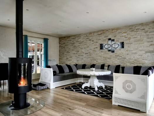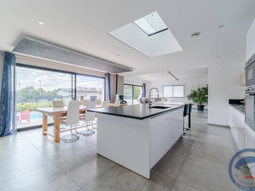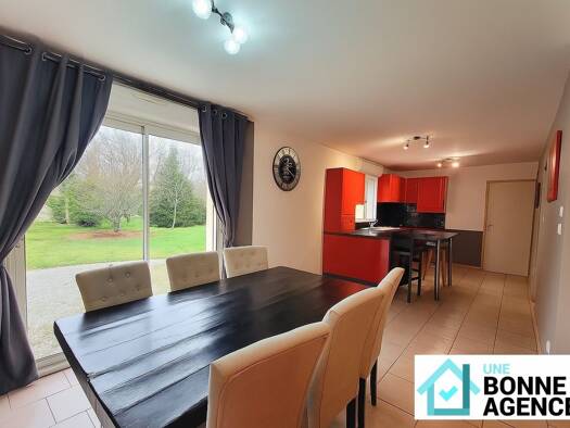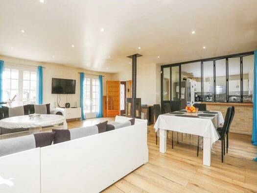 Venez poser vos valises dans cette maison contemporaine de 178 m2 construite en 2014. De plain-pied, elle vous offre une entrée, un grand séjour cathédrale lumineux avec un poêle à bois qui donne sur...
