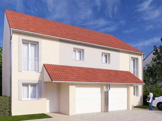 A la frontière du Luxembourg et de la Belgique maison individuelle de 80 m2 avec cuisine ouverte sur le séjour donnant accès à un agréable jardin trois chambres, salle-de-bains 2 wc et garage et deux...
