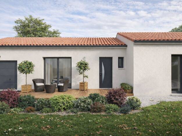 Maison de 81M2 avec garage de 15M2 sur un terrain de 615M2 viabilisé comportant 3 chambres , Une salle de bain équipée et un WC indépendant ; une belle pièce de vie apportant lumière et confort .cell...