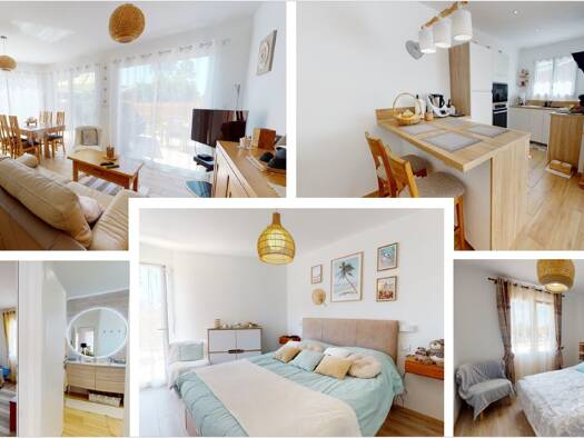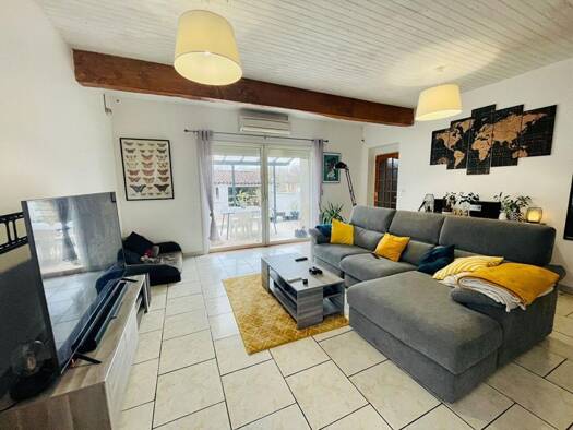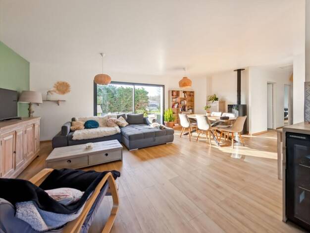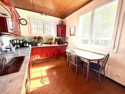 Agréable maison familiale de plus de 120m², de plain pied. Elle comprend, une spacieuse pièce de vie lumineuse donnant sur une véranda et le jardin, d'une cuisine équipée, de 3 chambres, d'une salle ...