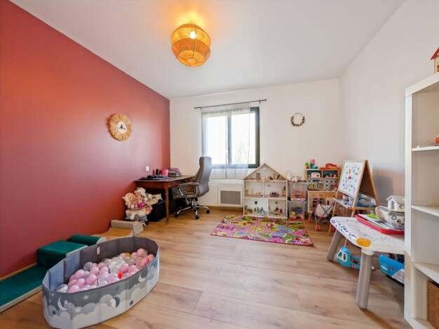 Maison de 6 pièces avec 4 chambres + 1 bureau, environnement très calme et discret avec vue agréable. A l'entrée se trouve le salon/salle à manger, Cuisine fermée et une réserve permettant d'offrir d...