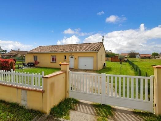 Dans un environnement très calme aux portes d'un village, agréable maison traditionnelle de type 4 de plain-pied avec travaux récents, garage, carport, abri de jardin, le tout sur plus de 1000m2 de t...