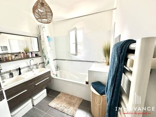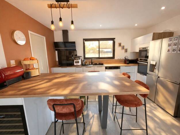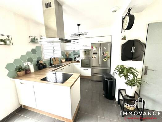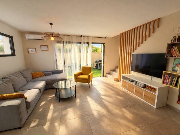 Mauguio Immobilier vous présente, dans un enclos, à deux pas du centre, une maison T4 de 92 m² (année 2018). Elle se compose d’une spacieuse pièce de vie de 40 m² avec cuisine équipée, d’une buanderi...