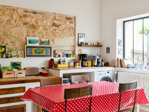 Au coeur du charmant centre-ville de BAILLARGUES, Jolie maison de village pleine de charme avec pierres apparentes composée à l'étage de deux grandes chambres de 20 m², dont une avec dressing, au rez...