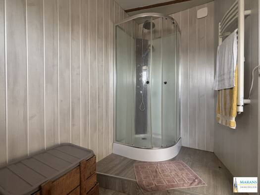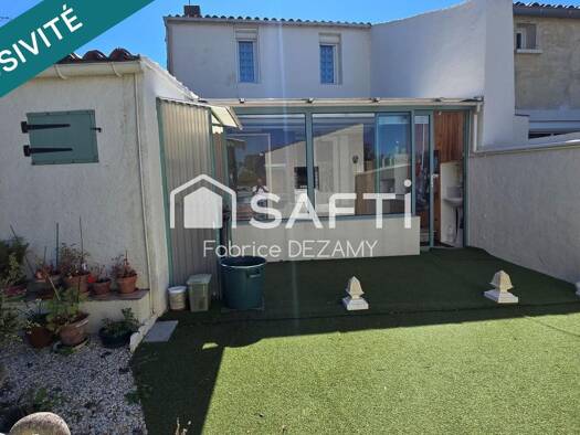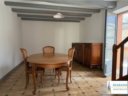MARANS, maison de ville de type 3 d'environ 100 m² avec cour et garage.Une véranda plein sud de 14 m², un salon/séjour, une cuisine aménagée et équipée, salle d'eau/WC, une arrière cuisine. A l'étage...