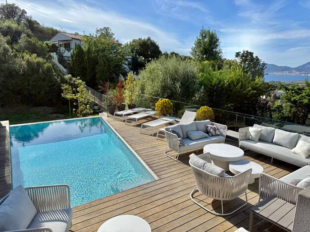 À 600 mètres de la plage, cette villa avec vue mer d’environ 250 m² se situe dans un environnement calme et résidentiel, à l'abri des regards et hors lotissement. De plain-pied : un vaste séjour baig...