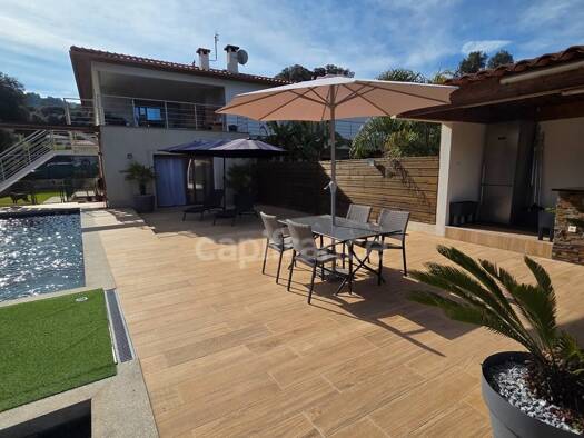 À seulement quelques minutes des plages et des commodités, face au maquis et aux reliefs environnants. Édifiée sur un terrain d’environ 1 500 m², la villa, en tres bon état général, offre une exposit...