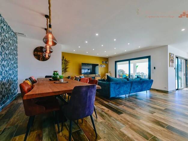 À seulement 15 min des de l’aéroport et des plages Maison plein pied 5 pièces . - Elle comprend un séjour lumineux avec cuisine ouverte de 46 m2 (îlot central et buanderie), - 3 chambres dont 1 suite...