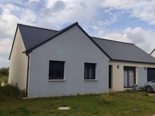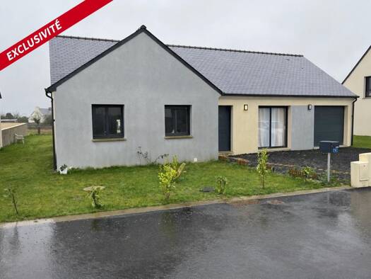 Maison de plain-pied, neuve, bien située, proche du bourg, à environ 8 minutes de BAUD, composée de : - au rez-de-chaussée : salle à manger-salon et cuisine aménagée et équipée (lave-vaisselle, four,...