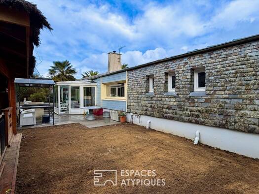 A quelques mètres de la voie verte et à 2km du bourg de Plourin Les Morlaix, cette maison des années 1950, de plain pieds a su être complètement repensée avec goût. C'est le calme de la campagne avec...