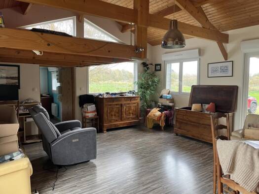 Agréable CHALET d'HABITATION construit vers 2012, d'environ 56m2 habitables et implanté sur un foncier de presque 4000m2, au calme, au bout d'un petit chemin. La construction de plain pied, réhaussée...