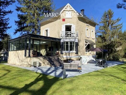 Certaines propriétés séduisent par leurs volumes. D’autres par leur implantation. Celle-ci réunit les deux, au cœur d’un terrain arboré de près de 7 000 m². Développant environ 275 m² habitables, cet...