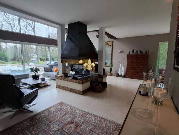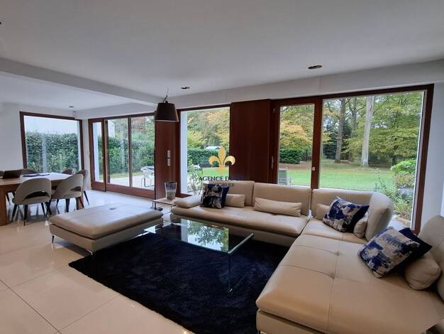 Exclusivité sur la commune de Luzarches en lisière du Golf de Mont Griffon, au cœur d'un parc d'environ 6000m² maison d'architecte d'exception d'une superficie de 540m² sur 3 niveaux, aux prestations...