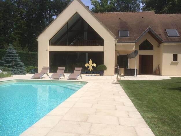 Maison d'exception située dans le prestigieux Domaine du Lys à Lamorlaye. Cette propriété de 400m², édifiée sur un terrain entièrement clos de plus de 5 000 m² avec piscine chauffée, offre des volume...