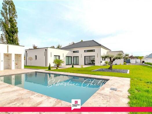 iad France - Nisrine Koca vous propose: Secteur Nord hors lotissement Magnifique maison de plain-pied contemporaine achevée en 2023, offrant un style de vie moderne et confortable. Cette propriété re...