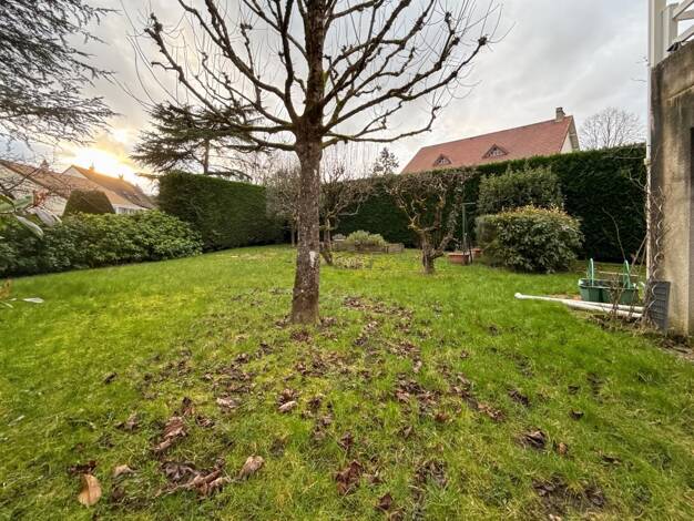 Maison de ville sur terrain de 340 m² avec garage et dépendances, comprenant : un salon avec cheminée et insert donnant sur le séjour et sur la cuisine aménagée, trois chambres, une véranda, une sall...
