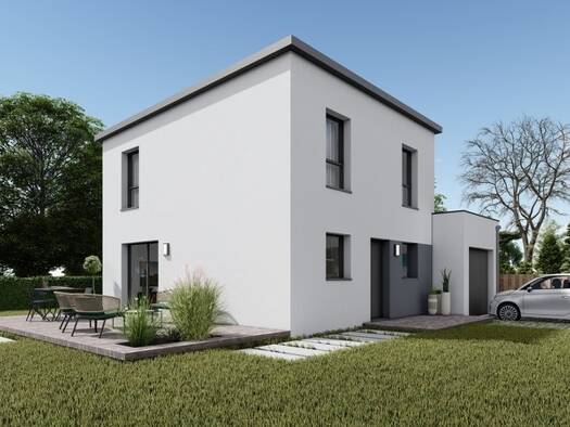 Sur ce terrain, nous vous proposons cette maison neuve : la Blainium, une maison résolument moderne et très singulière. La Blainium, une maison de plain-pied contemporaine, propose une façade très st...